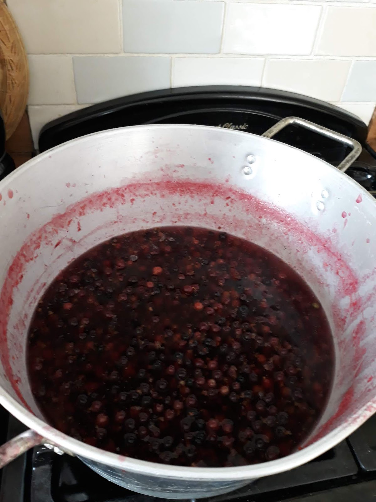 I've been busy preserving the produce I told you about last time, and made the redcurrants into twelve pots of redcurrant jelly,