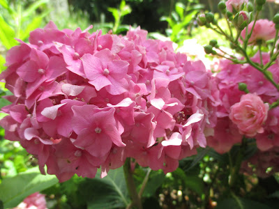 In the garden the colours are no longer delicate and pastel, but bright and citrussy. There's lots of purple, oranges and bold pinks, all against a background of green.