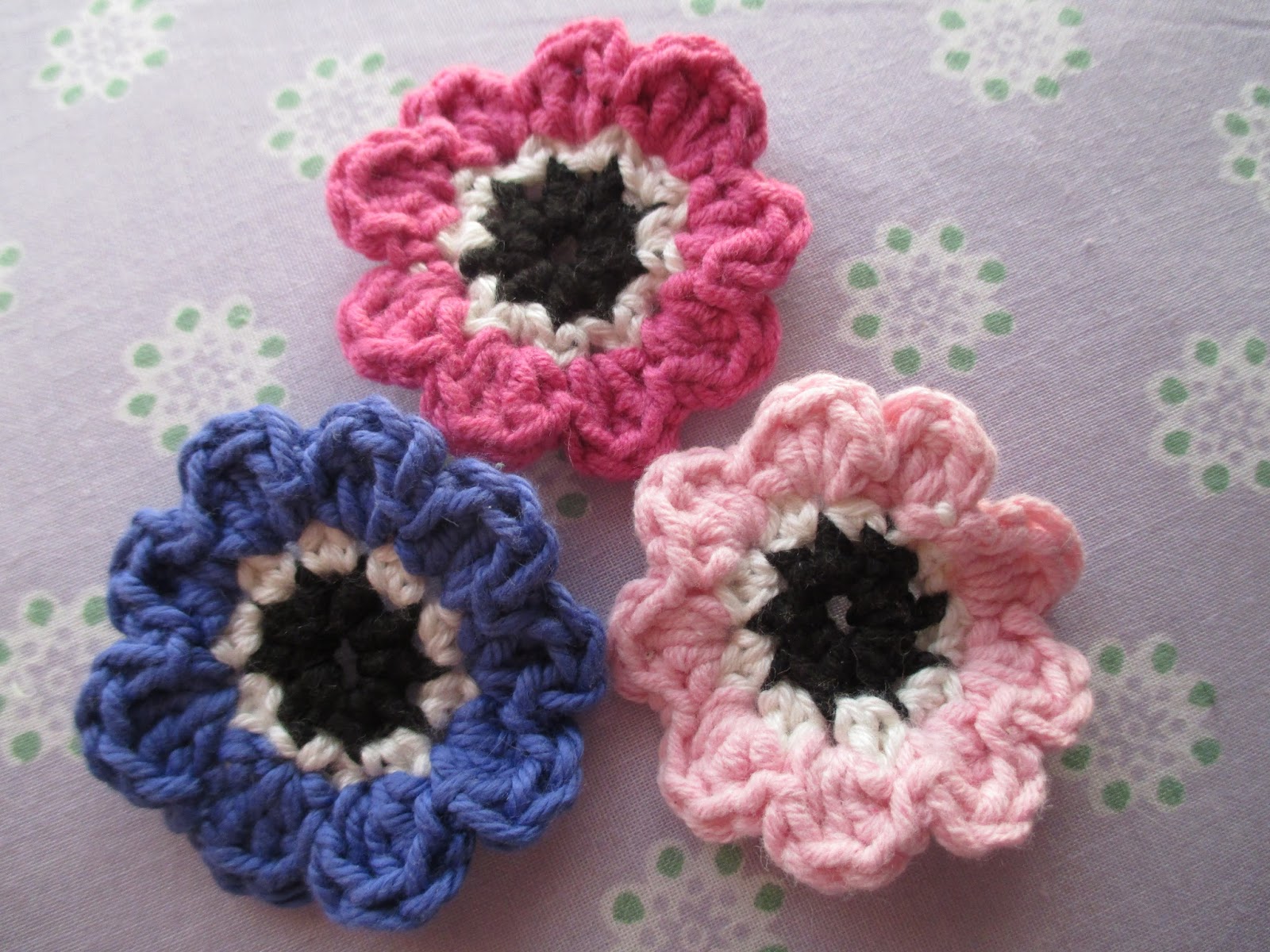 And I crocheted some little anenomes from Heather's pattern at Pink Milk. They're easy to make and really pretty.
